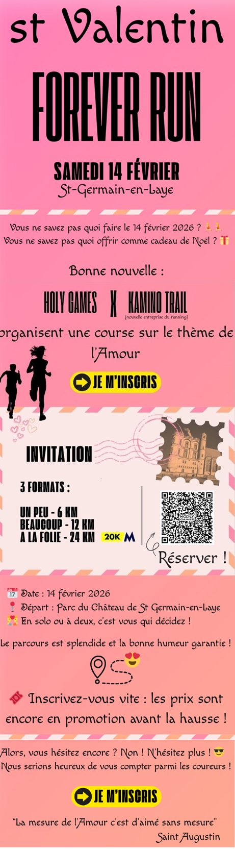 27 Mai : 15° Raid fraternité / version locale ( organisé par l'EPS Clermont pour les collégiens ) 18 Mai : 2° édition du Paris Eglises Tour : 10 km des paroisses de Paris : affiche / parcours