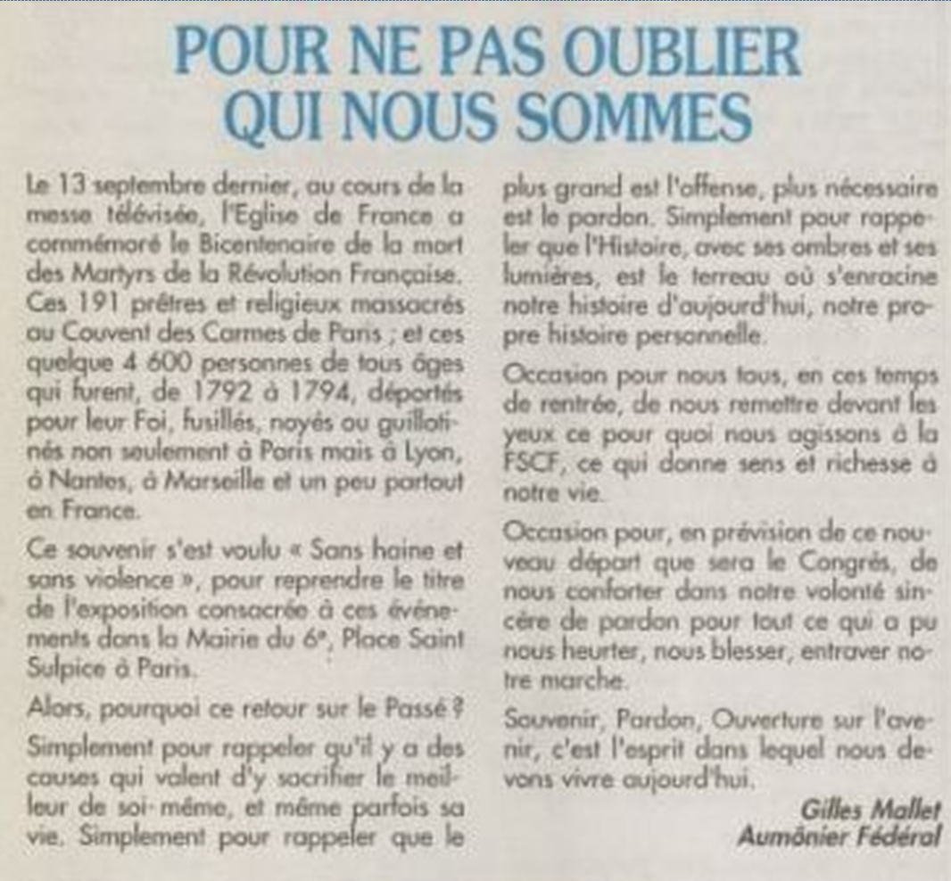 père Gilles Mallet, aumônier de la FSCF ... Gilles Mallet,