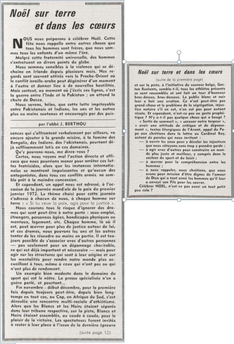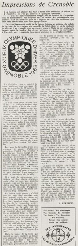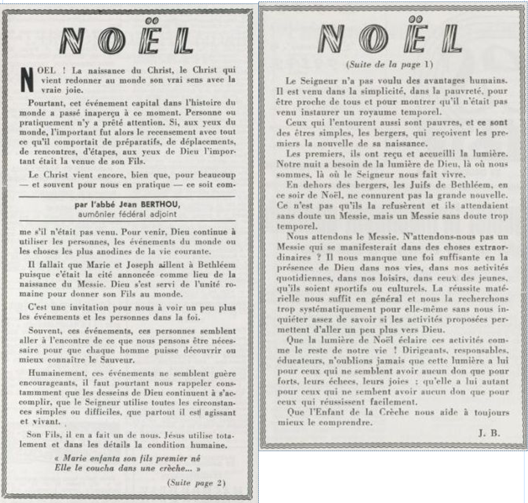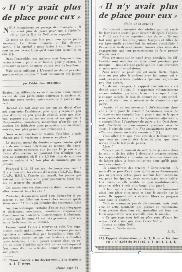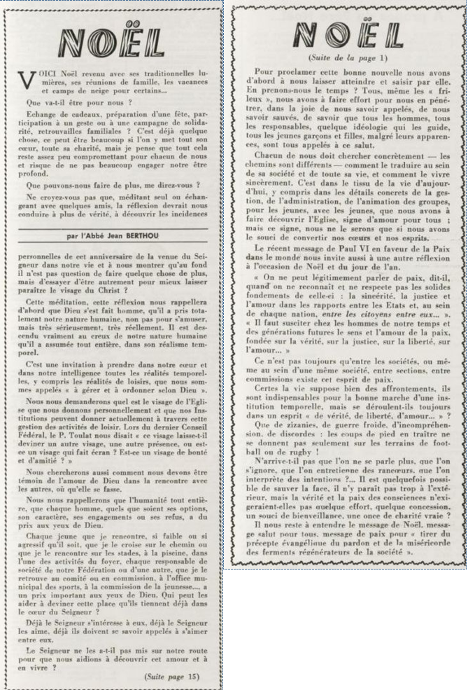 Mot dans la revue Les Jeunes 1960 : La France en travers Mot dans la revue Les Jeunes 1962 : Noël Mot dans la revue Les Jeunes 1963 : Le monde du sport Mot dans la revue Les Jeunes 1963 : Homélie du congrès Mot dans la revue Les Jeunes 1963 : Il n'y avait pas de place pour eux Mot dans la revue Les Jeunes 1964 : Au delà du visible Mot dans la revue Les Jeunes 1964 : L'exercice spirituel Mot dans la revue Les Jeunes 1964 : Bilan Mot dans la revue Les Jeunes 1965 : Piéton de l'espace ou pionnier des gouffres Mot dans la revue Les Jeunes 1965 : Aimer Dieu, aimer les autres Mot dans la revue Les Jeunes 1966 : En équipe Mot dans la revue Les Jeunes 1966 : Les sans grades Mot dans la revue Les Jeunes 1966 : Ils ont gagné mais à quel prix Mot dans la revue Les Jeunes 1966 : Formation morale et spirituelle Mot dans la revue Les Jeunes 1966 : Et les siens ne l'ont pas reconnu Mot dans la revue Les Jeunes 1967 : Le Seigneur est ressuscité Mot dans la revue Les Jeunes 1967 : Noël Mot dans la revue Les Jeunes 1968 : Sport pour tous Mot dans la revue Les Jeunes 1968 : Impressions de Grenoble Mot dans la revue Les Jeunes 1968 : Renouveau Mot dans la revue Les Jeunes 1968 : Sport et vie chrétienne Mot dans la revue Les Jeunes 1968 : Noël Mot dans la revue Les Jeunes 1968 : Humanisme et foi chrétienne Mot dans la revue Les Jeunes 1969 : Ceux qui ont faim Mot dans la revue Les Jeunes 1969 : Dévouement ou apostolat Mot dans la revue Les Jeunes 1970 : Contacts et réflexion Mot dans la revue Les Jeunes 1970 : Les perspectives d'avenir de la fédération Mot dans la revue Les Jeunes 1971 : Halte-la Mot dans la revue Les Jeunes 1971 : Noël sur terre et dans les coeurs Mot dans la revue Les Jeunes 1972 : Il faut maintenant nous dépasser Mot dans la revue Les Jeunes 1972 : Les stages Mot dans la revue Les Jeunes 1978 : Une marche ininterrompue |