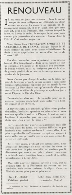 ce contexte conflictuel, les évènements de 1968 sont aussi pour la FSCF